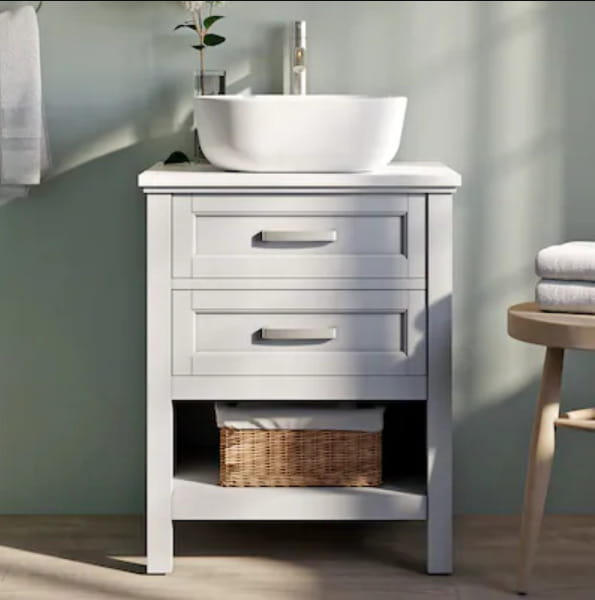 It mainly appears in luxury restaurants and hotel lobbies. This is a vanity that uses bowls to rise around the sink area. With a design that protrudes from the main body of the vanity and has a link to a separate faucet. Also, the storage spots in the lower part are similar to anything else but the sink will have a nicer look. However, it can reduce quite a lot of space