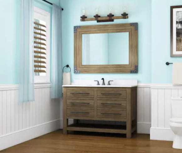 Wood is known to be a popular material for vanities, but solid plywood is also a good option to consider. It is the same hardwood as in the attic or other parts of the house. Most solid plywood is made of several sheets of wood glued together to create a solid block. It has the ability to handle moisture.