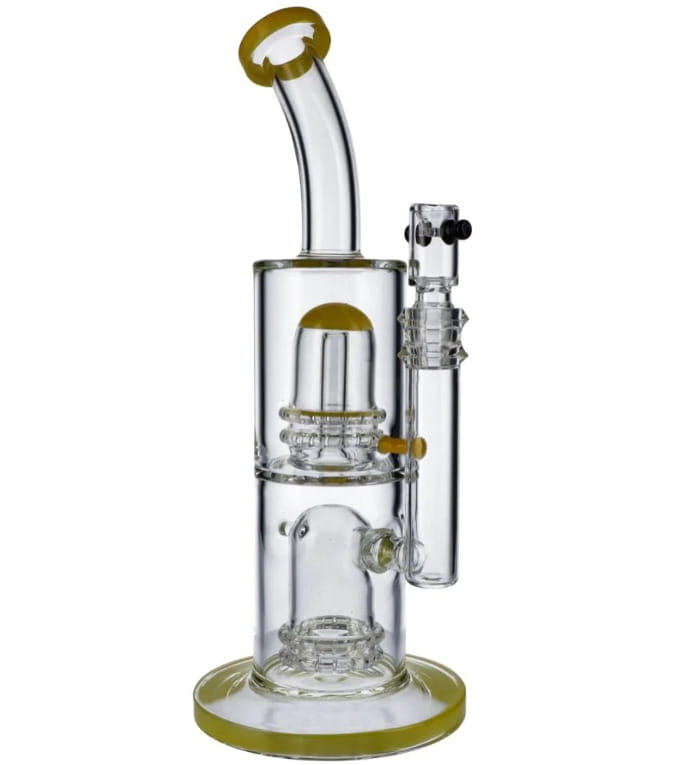 This type typically has one to eight individual flow paths or tributaries, although they may have more than a dozen. Smaller models have a doubletree with two or a triple tree with three trees. In general, more arms come with intricate glass work in the bong, meaning high-end percolators that are difficult to craft.